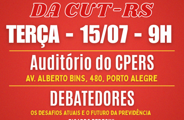 O encontro de aposentados da CUT-RS acontece na próxima terça (15), às 9h da manhã no Auditório do CPERS Sindicato, as inscrições podem ser feitas pela internet. O objetivo do encontro é trazer um debate sobre a realidade da previdência do regime geral e do regime próprio, com os palestrantes Ricardo Berzoini e Luciano Fázio.