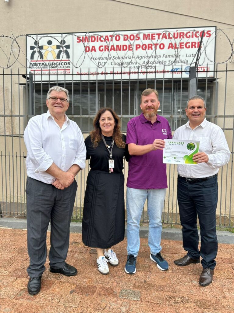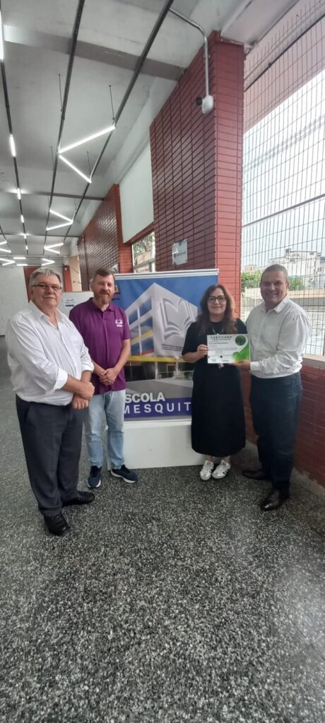 A entrega do Selo de Sustentabilidade foi um momento solene e de grande reconhecimento, marcando a união entre tecnologia e responsabilidade ambiental. A certificação foi entregue pessoalmente pelo Dr. Luiz Carlos Zancanella, Diretor de Tecnologia do Instituto Safeweb, e pelo Dr. Alexandre Tavares, Diretor de Pesquisa, Desenvolvimento & Inovação do Instituto Safeweb, receberam o selo em nome da instituição o Sr. Adriano Souza Filippetto, Presidente do Sindicato dos Metalúrgicos da Grande Porto Alegre e Sra. Claudete Souza Oliveira, Diretora da Escola José César de Mesquita, que expressaram sua gratidão e reafirmaram o compromisso da escola com a continuidade dessas práticas transformadoras.