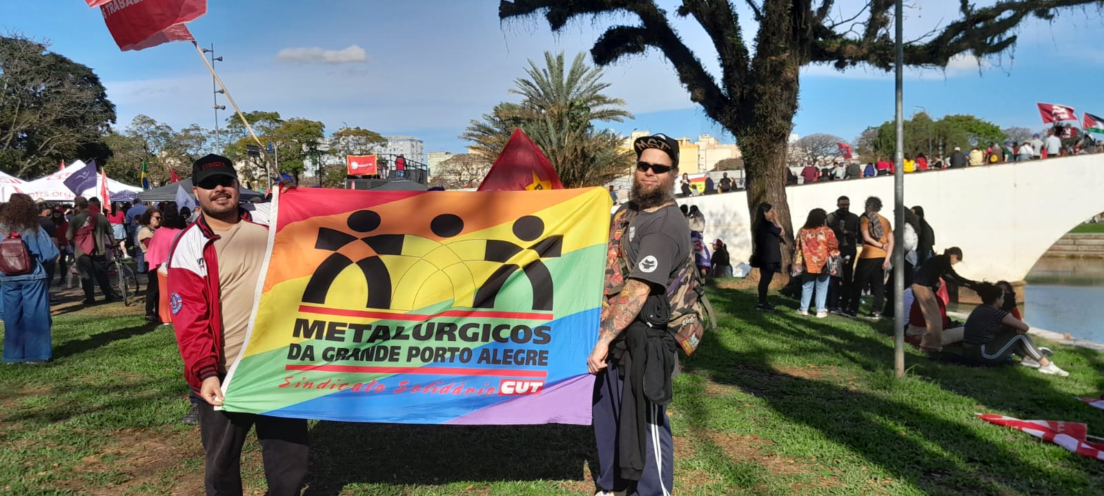 Neste domingo (7), mais de 2 mil pessoas se reuniram no Largo dos Açorianos, em Porto Alegre, para o ato em defesa da soberania nacional e o 31º Grito dos Excluídos. Convocado pelas centrais sindicais e movimentos sociais, o encontro reafirmou a luta por um Brasil democrático, justo e inclusivo, com foco em pautas como o fim da escala 6×1, a redução da jornada de trabalho, a isenção do Imposto de Renda até R$ 5 mil e a realização de uma reforma tributária que taxe as grandes fortunas.