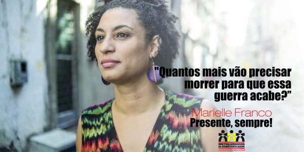 A direção, assim como todos os funcionários, do Sindicato dos Trabalhadores Metalúrgicos de Porto Alegre (STIMEPA) lamenta a morte da vereadora Marielle Franco (PSOL-RJ) e se solidariza com os familiares e amigos. Na noite dessa quarta-feira (14), Marielle foi executada com nove tiros após sair do evento “Jovens Negras Movendo as Estruturas”, na Lapa, região central do Rio de Janeiro. No ocorrido, o motorista do veículo, Anderson Pedro Gomes, também foi morto.