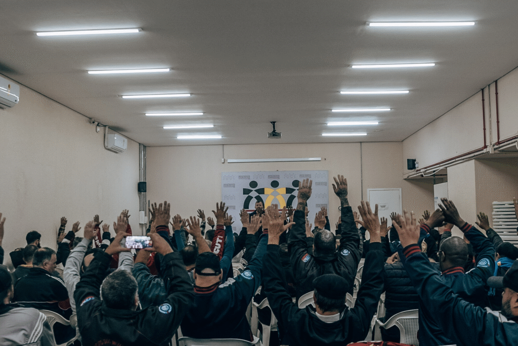 O piso salarial subiu 8,08%, chegando a R$ 2.002,00, e todas as cláusulas sociais foram renovadas por dois anos, com validade até 2027. Foi uma vitória que mostra que os direitos não são garantidos por lei — eles nascem da mobilização. Os 15 minutos parados na frente da fábrica valem muito mais do que parecem.